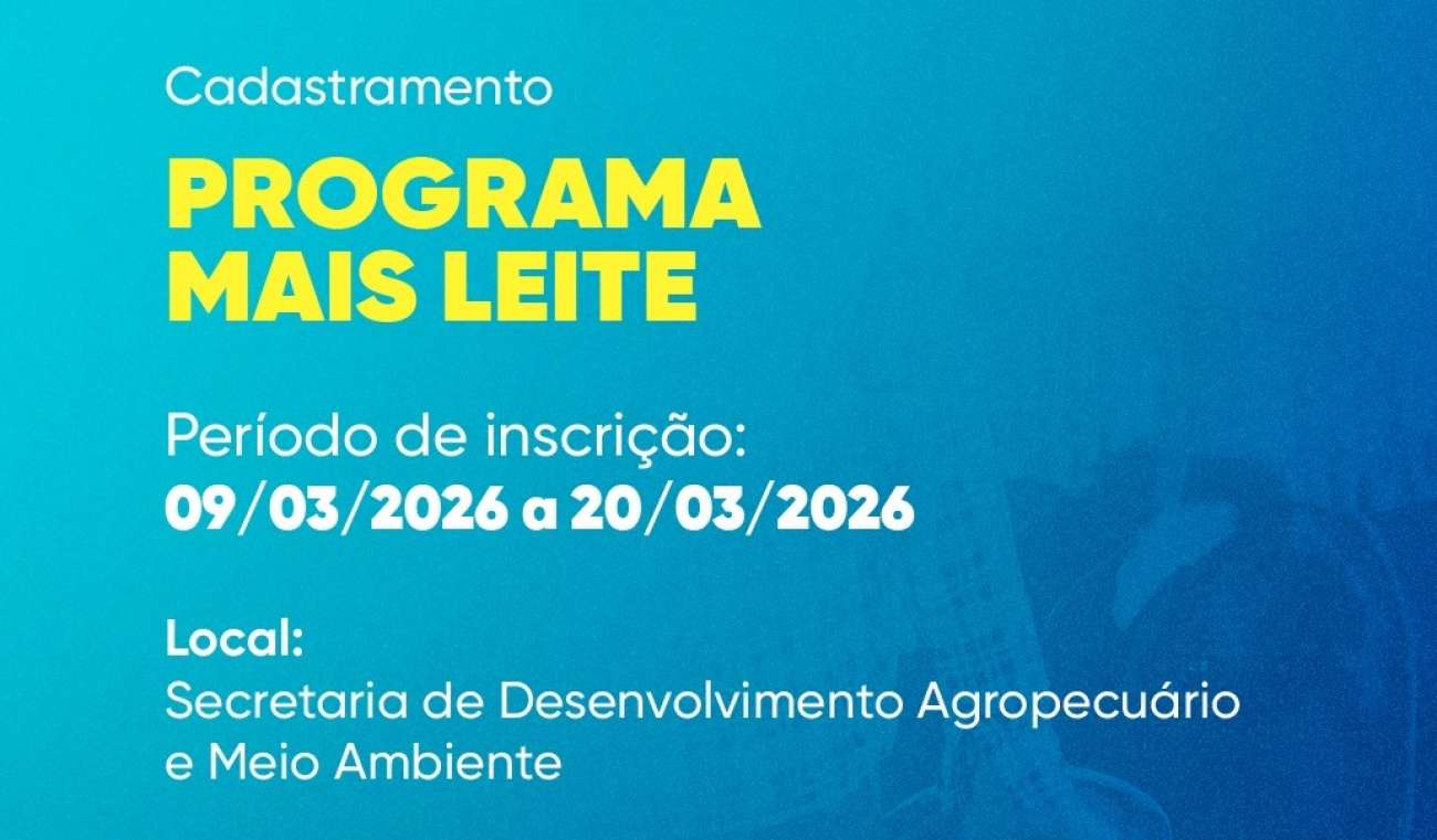 A Prefeitura de Santa Cecília do Sul informou que estão abertas as inscrições para o Programa Mais Leite, iniciativa voltada ao fortalecimento da produção leiteira no município. O cadastramento ocorre até o dia 20 de março.