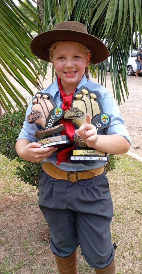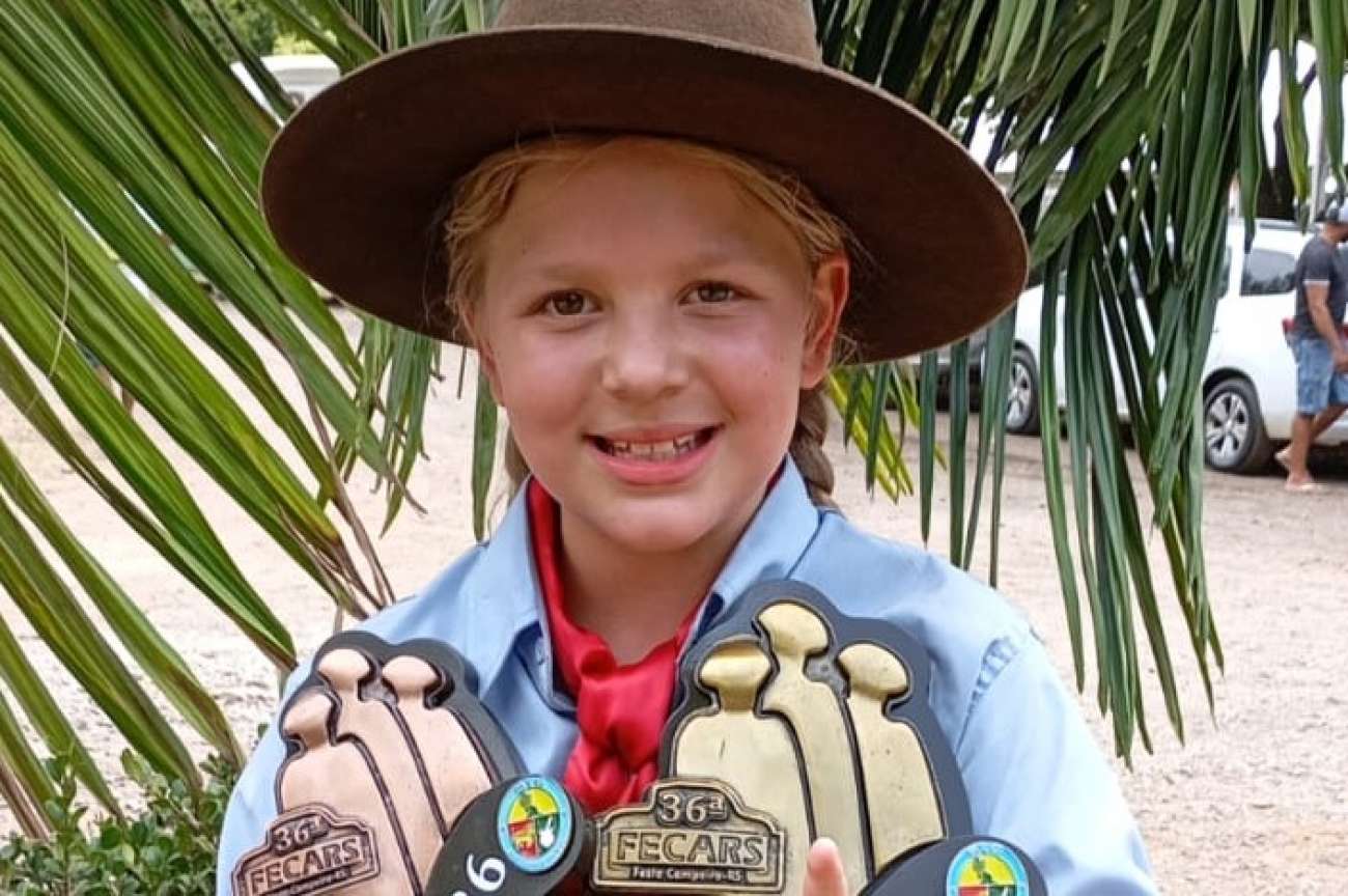 A jovem prenda Sophia Panisson Marcon, de Santa Cecília do Sul, voltou a se destacar em uma das principais competições do tradicionalismo gaúcho. Durante a 36ª edição da Festa Campeira do Rio Grande do Sul, realizada entre quinta-feira (19) e domingo (22), em Santa Cruz do Sul, a menina conquistou dois importantes resultados em sua categoria.