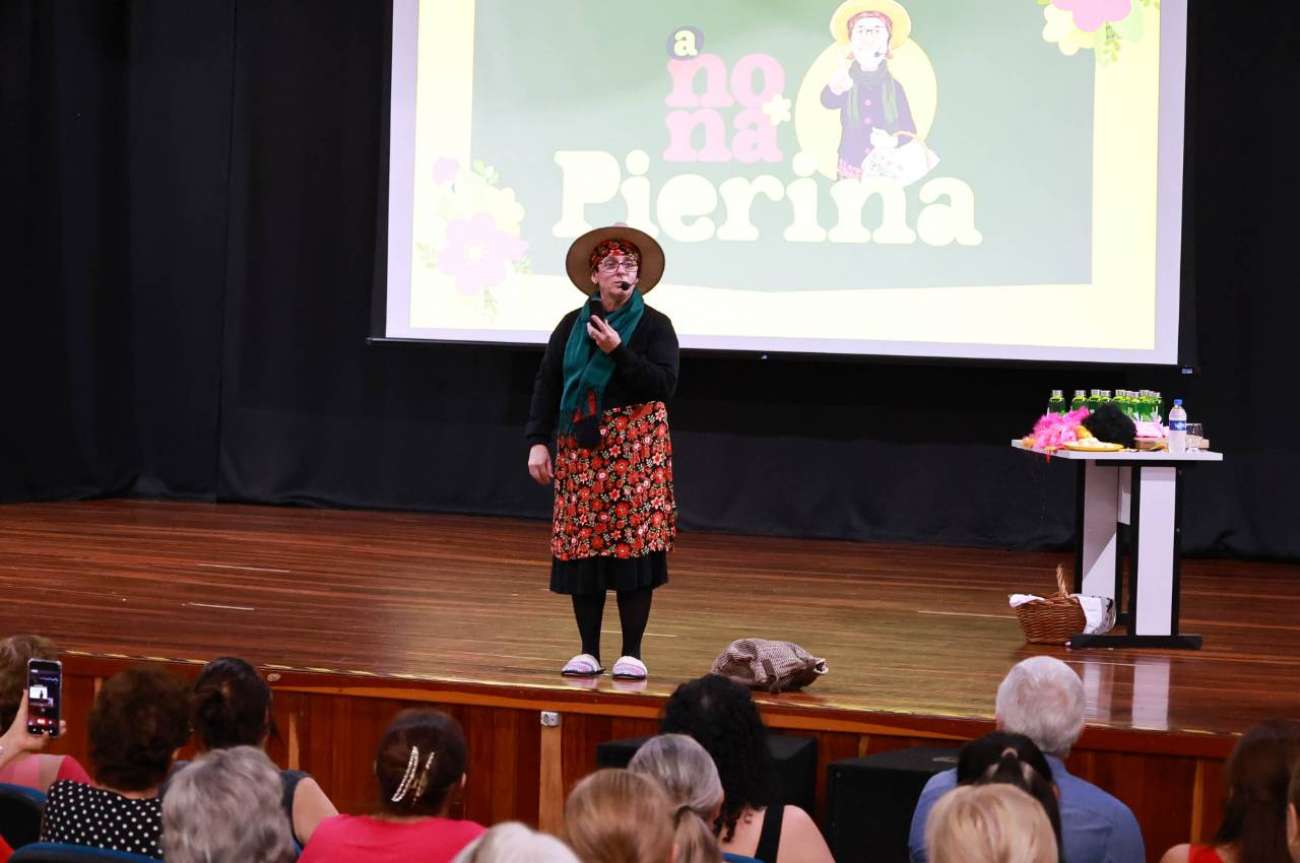 Um dos pontos altos da tarde foi a palestra “Nona Pierina apresenta: Pensa que semo paiáço?”, ministrada por Marta Samujeden. Com uma abordagem leve e bem-humorada, a apresentação proporcionou momentos de reflexão, emoção e muitas risadas, envolvendo o público de forma descontraída.