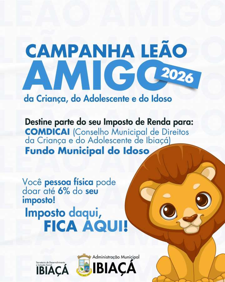 A campanha Leão Amigo 2026 está mobilizando contribuintes de Ibiaçá a destinarem parte do Imposto de Renda para projetos sociais no próprio município. A iniciativa permite que pessoas físicas transformem parte do tributo em investimentos diretos em ações voltadas a crianças, adolescentes e idosos, sem custo adicional.