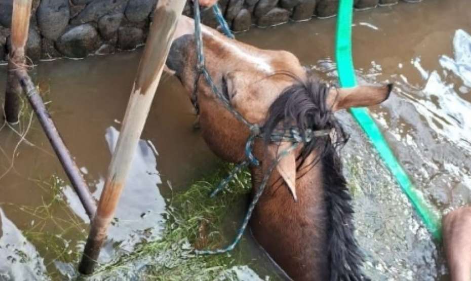 Bombeiros resgatam cavalo que caiu em piscina em Lagoa Vermelha