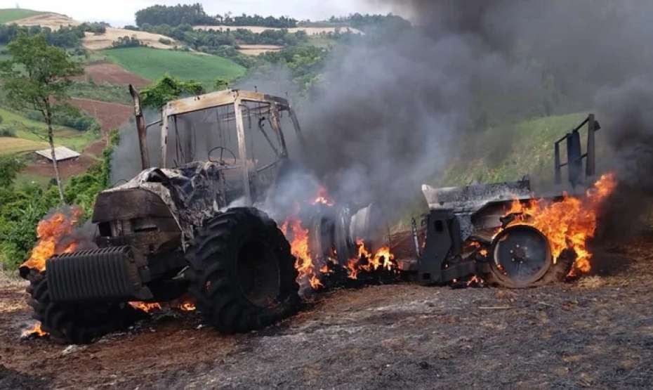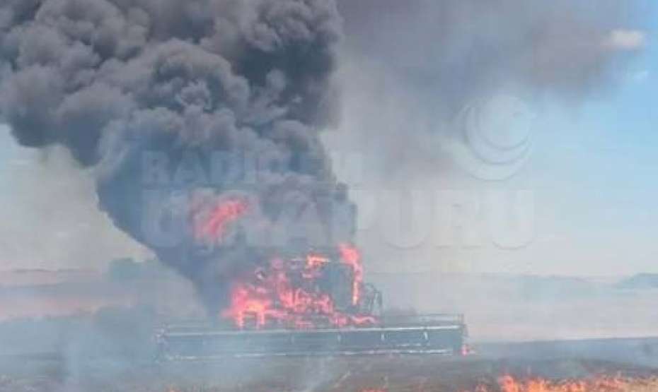 Máquina agrícola é destruída por incêndio no interior de Sertão