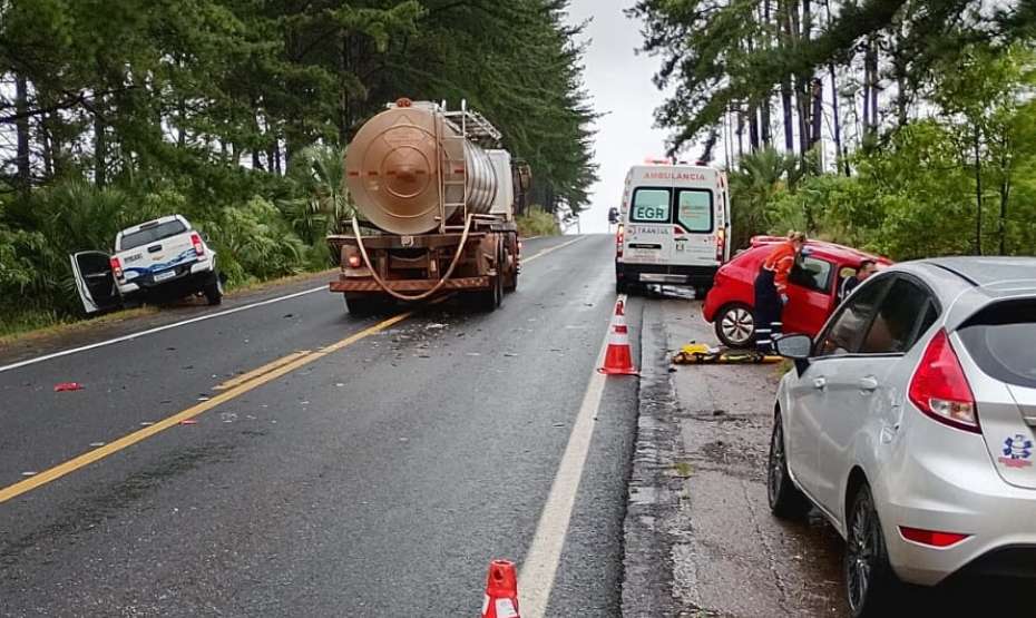Acidente envolve três veículos (um de Tapejara) e deixa quatro feridos na RS-135 em Coxilha