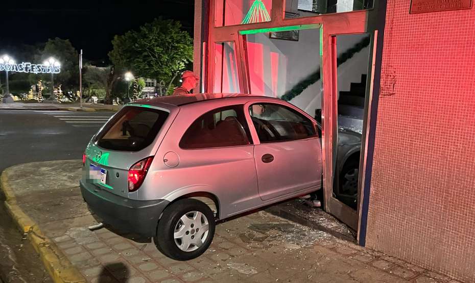Condutor perde o controle e colide veículo contra porta da Biblioteca Municipal de Getúlio Vargas