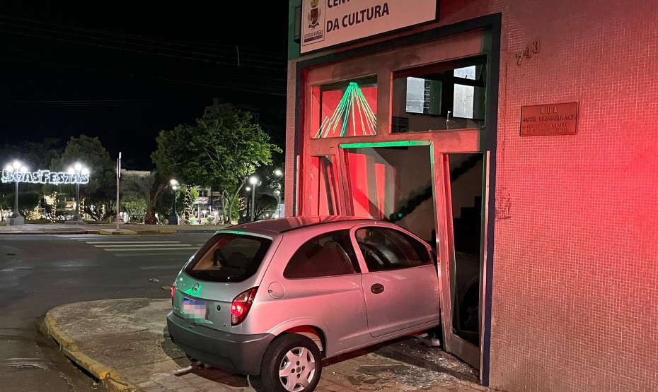 Veículo colide contra prédio da Biblioteca Municipal de Getúlio Vargas